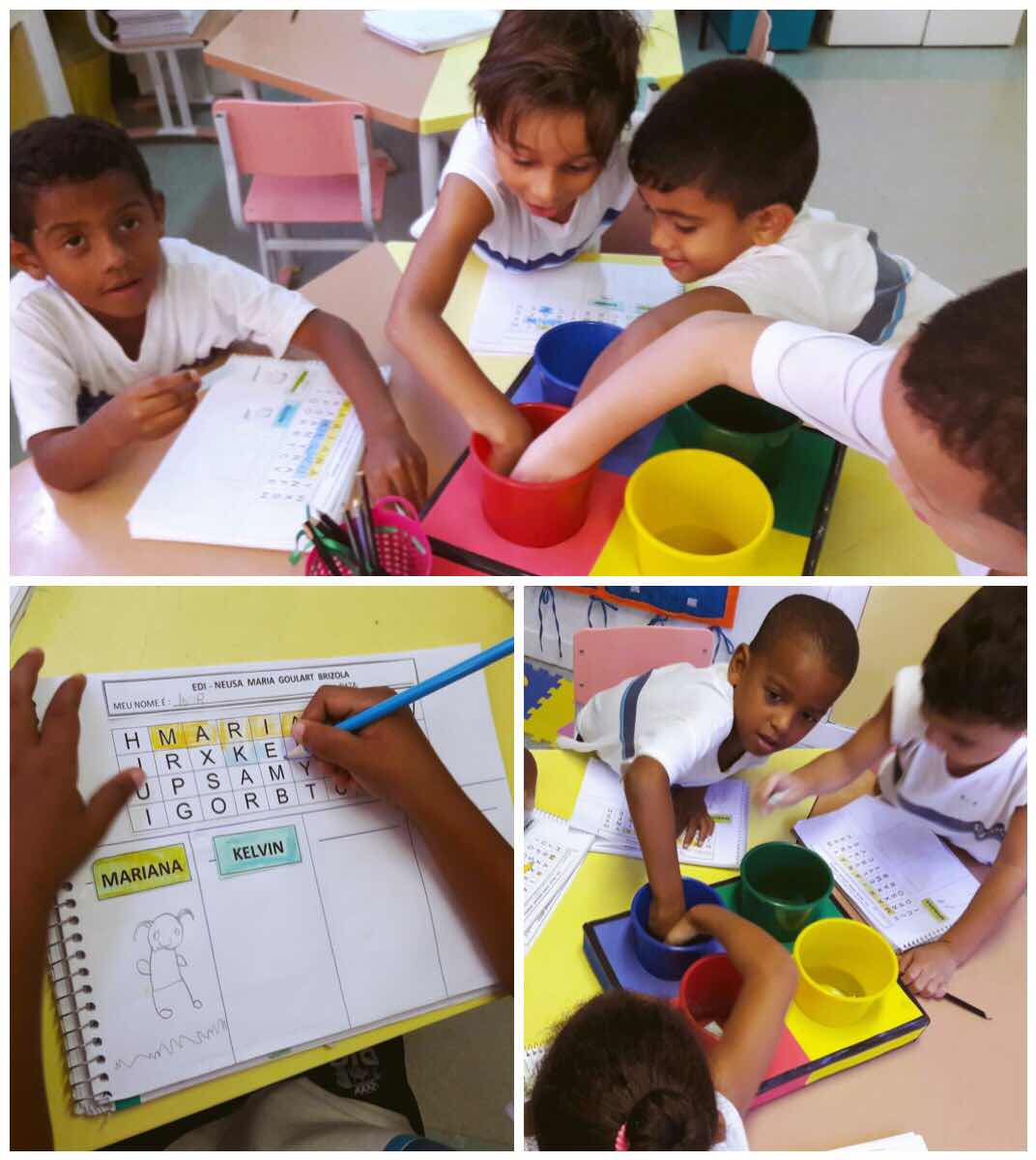E tornando a brincadeira cada vez mais divertidas, os pequenos da Pré-escola II da professora Luciane brincaram de sortear palavras que tinham que ser encontradas no caça-palavras. O sorteio, o lúdico e a aprendizagem estiveram juntos em todos os momentos dessa proposta. Além da percepção visual, reconhecimento de letras e do nome dos amigos, a organização espacial também foi muito trabalhada com essa atividade.
