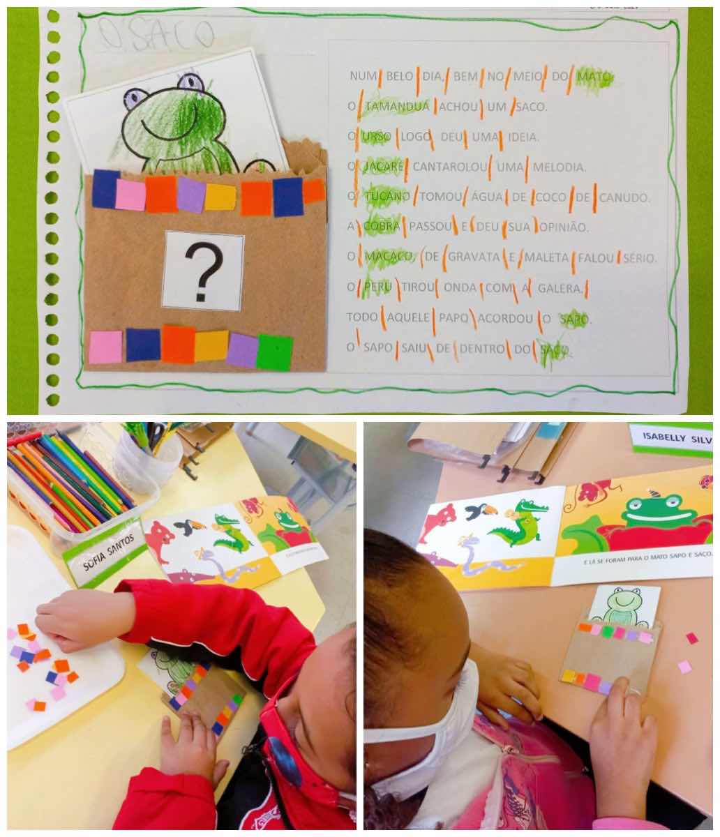 A pré-escola II é uma etapa de extrema importância para os pequenos, pois é quando a maturidade dos mesmos começa a evoluir e assim o conhecimento sobre o mundo letrado é ampliado a cada dia! Nesse desafio a professora Luciane pediu para que os pequenos que ouviram a história do “saco” e tinham a história registrada em suas folhas, fizessem a segmentação das palavras do texto e descobrissem que um só texto é formado por diversas palavras diferentes! Com essa atividade os pequenos desenvolveram a percepção visual e o reconhecimento de palavras!